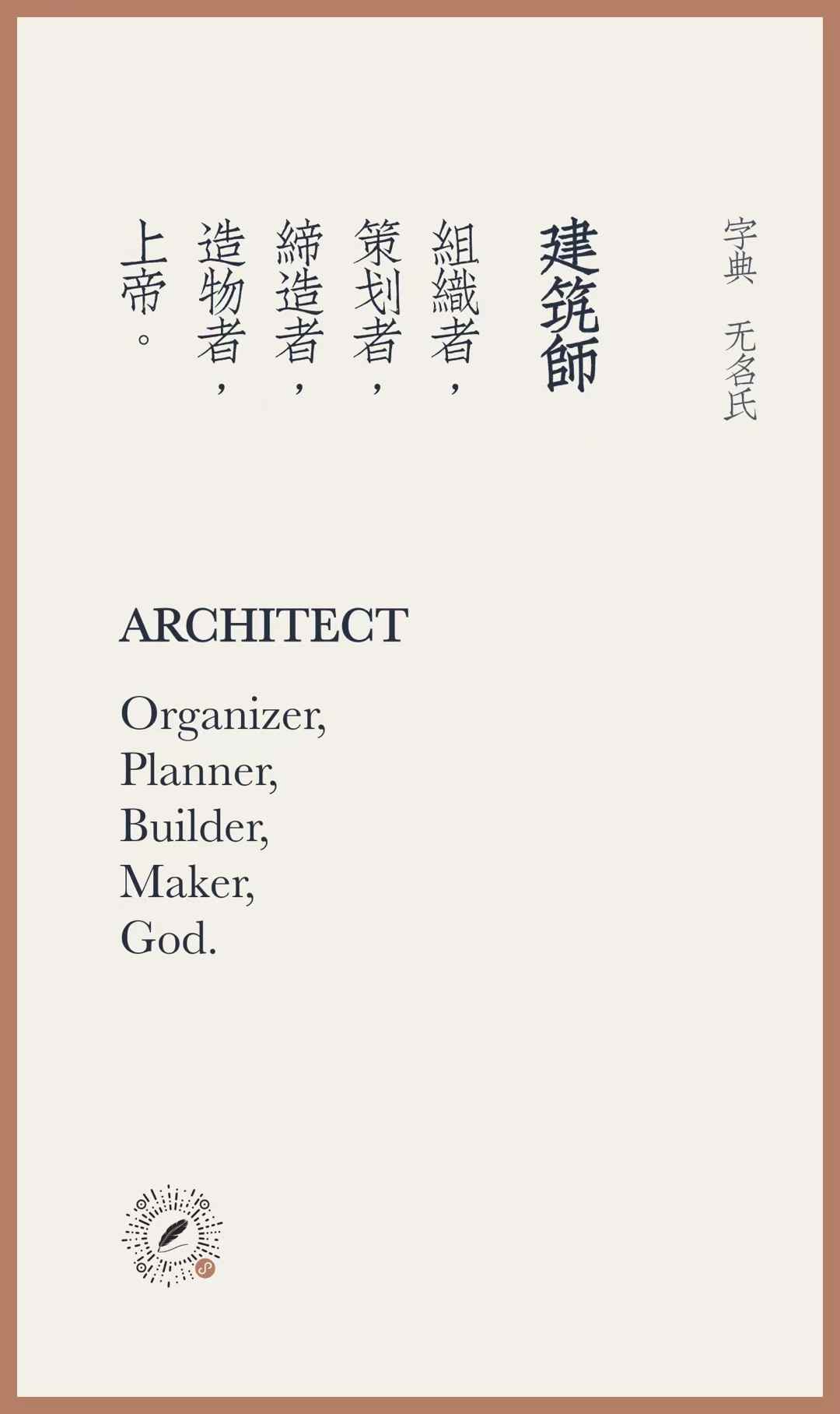 下面张卡片不是AI生成的,是无名氏我做的。这张卡片送给和我一样经受建筑师训练的朋友,和不断制造新事物的人。